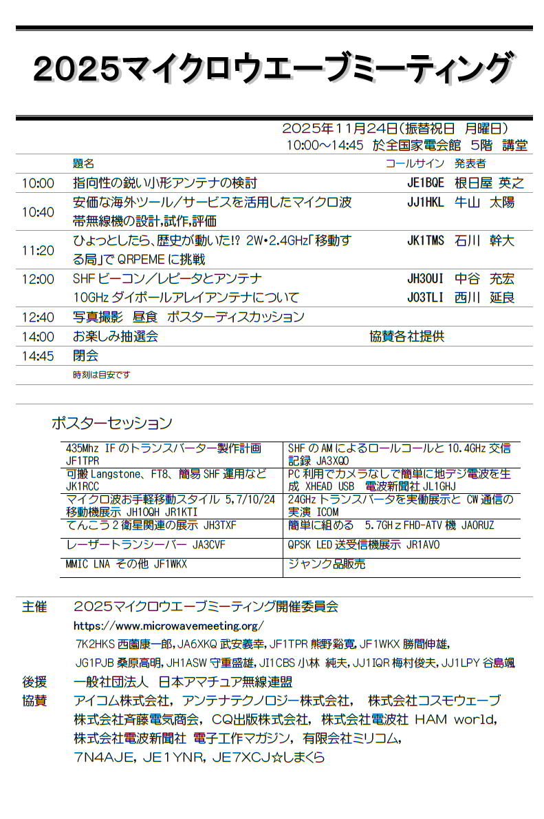 製作、測定、通信実験、技術解説、資料、エリアやクラブの活動状況、その他、「マイクロウエーブ」、「光通信」等に関連あれば(なくても)どのような内容でも構いません。
